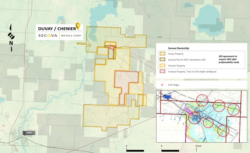 “This is a very exciting time for the company and its shareholders. Management has gone about the company exploration and acquisition plans in the most methodical way to preserve capital and create value. From last year’s expansion of the Duvay to include the Chenier claims, re-negotiating the terms of our joint-venture agreement with Tres-Or Resources and securing key personnel, the Company is now ready to move forward with Secova’s first drill program.” CEO and Chairman Brad Kitchen stated.